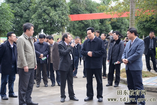 1月21日,全区教育精准扶贫现场推进会在百色市召开。自治区人民政府副主席黄世勇,自治区教育厅厅长秦斌率队到田东职业技术学校参观教育精准扶贫工作。百色市市长周异决,百色市委常委、宣传部部长、副市长黄建宁,百色市委常委、田东县委书记王军等领导陪同参观。