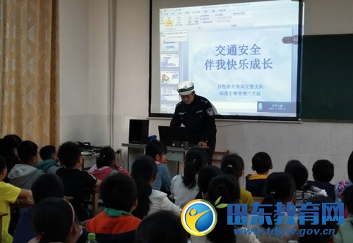 3月26日是全国中小学生第23个安全教育日。当天,百色市公安局交警支队高速公路管理三大队民警走进百银小学,给学生们上了一节别开生面的“交通安全课”。